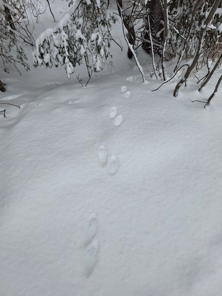 В зимнем лесу особенно легко распознать заячий след: длинноухий обитатель заповедника оставляет на снегу отпечатки всех четырёх лап. Лапы его очень широкие, приспособленные к передвижению по рыхлому лесному снегу. Его задние лапы намного длиннее передних, поэтому при прыжке он сначала ставит передние лапки, а затем далеко вперёд выносятся задние.