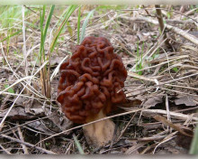 - Саркосома шаровидная (Sarcosoma globosum) — еще одна таежная редкость, появляющаяся ранней весной, прямо из-под тающего снега. Она похожа на пухлый темно-коричневый бочонок или бархатный горшочек, доверху наполненный прозрачной студенистой жидкостью (в народе её называют «ведьмин котел» или «земляное масло»). Этот гриб крайне чувствителен к вырубке лесов, поэтому заповедные дебри Вишеры — одно из немногих мест, где он чувствует себя в безопасности.